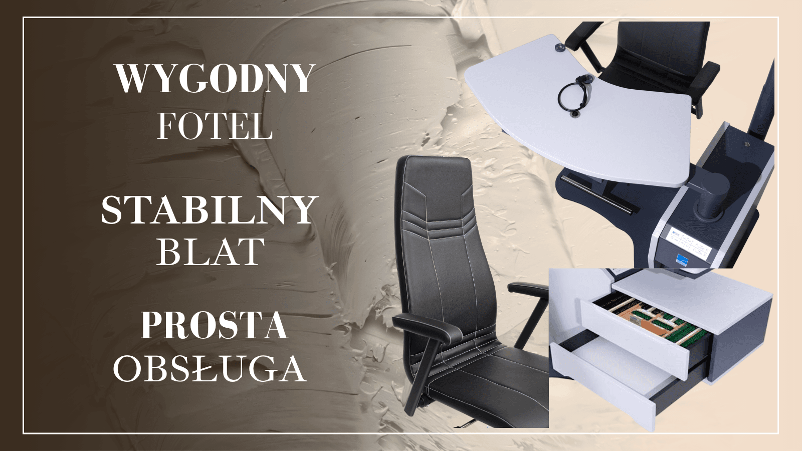 Unit okulistyczny COMFORT to produkt własny firmy Poland Optical z blatem na dwa urządzenia. Unit występuje w wersji lewostronnej lub prawostronnej.