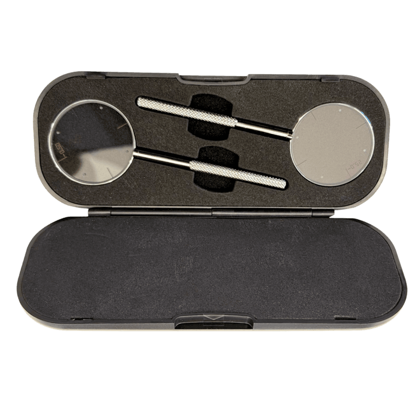Zestaw cylindrów krzyżowych o mocach +/-0,25 i +/-0,50 dioptrii w poręcznym, zamykanym etui.