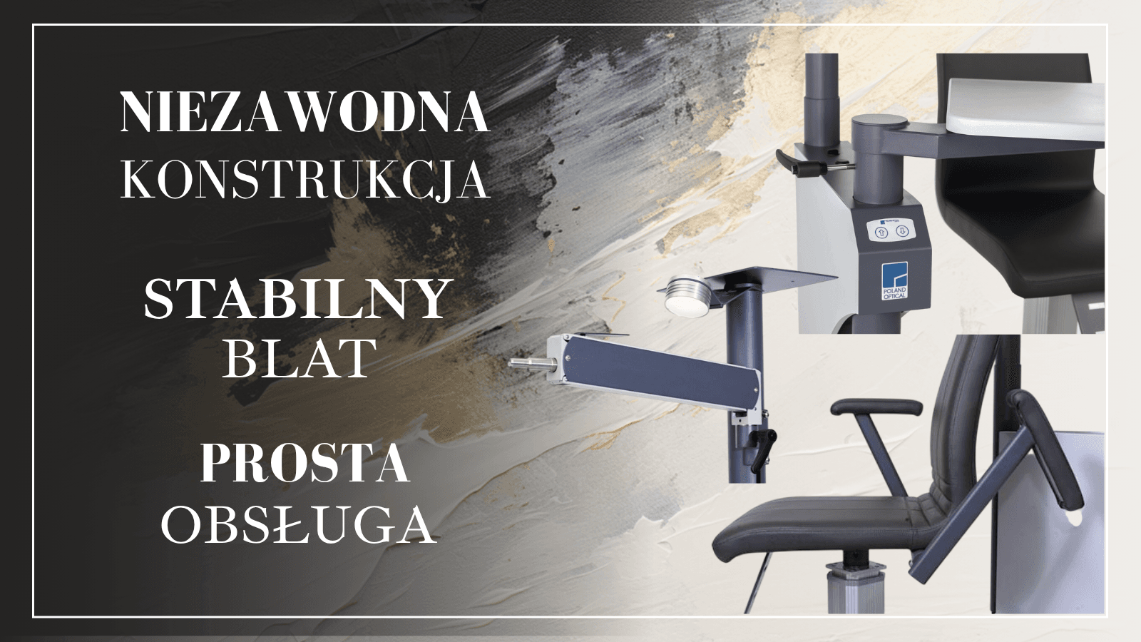 Opcjonalnie unit może być wyposażony w lampkę ledową, ramię foroptera i uchylne podłokietniki.