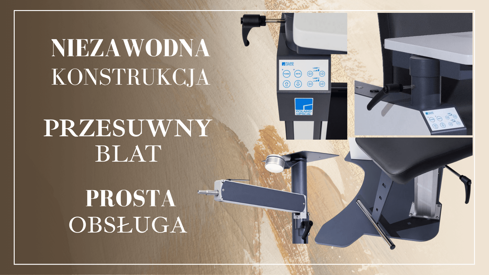 Blat można manualnie przesuwać wraz z urządzeniami, które włączają się odpowiednio w stosunku do położenia względem pacjenta. Może on być również odsuwany od fotela i blokowany rękojeścią umiejscowioną z boku korpusu.