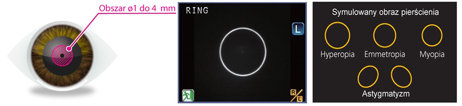 Autorefraktometr HandyRef analizuje szeroki obszar okręgu źrenicy (do 4 mm średnicy). Poprzez pomiar światła wpadającego przez źrenicę o tak dużym okręgu możliwy jest dokładny pomiar danych, które stają się bardzo zbliżone do refrakcji subiektywnej. Za pomocą urządzenia możliwe jest również wykonanie pomiaru małej źrenicy (min. 2 mm).
