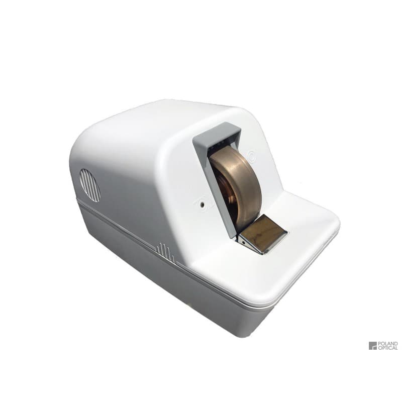 Ręczna szlifierka włoskiej firmy R.O.M. S.A. RICERCA OTTICO MECCANICA z pojemnikiem na wodę i czujnikiem zbliżeniowym.