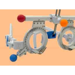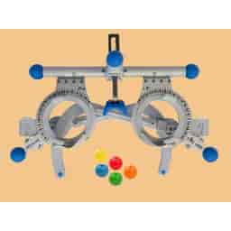 Dziecięca oprawka próbna na 5 par szkieł (3 z przodu, 2 z tyłu) o średnicy 28 mm.